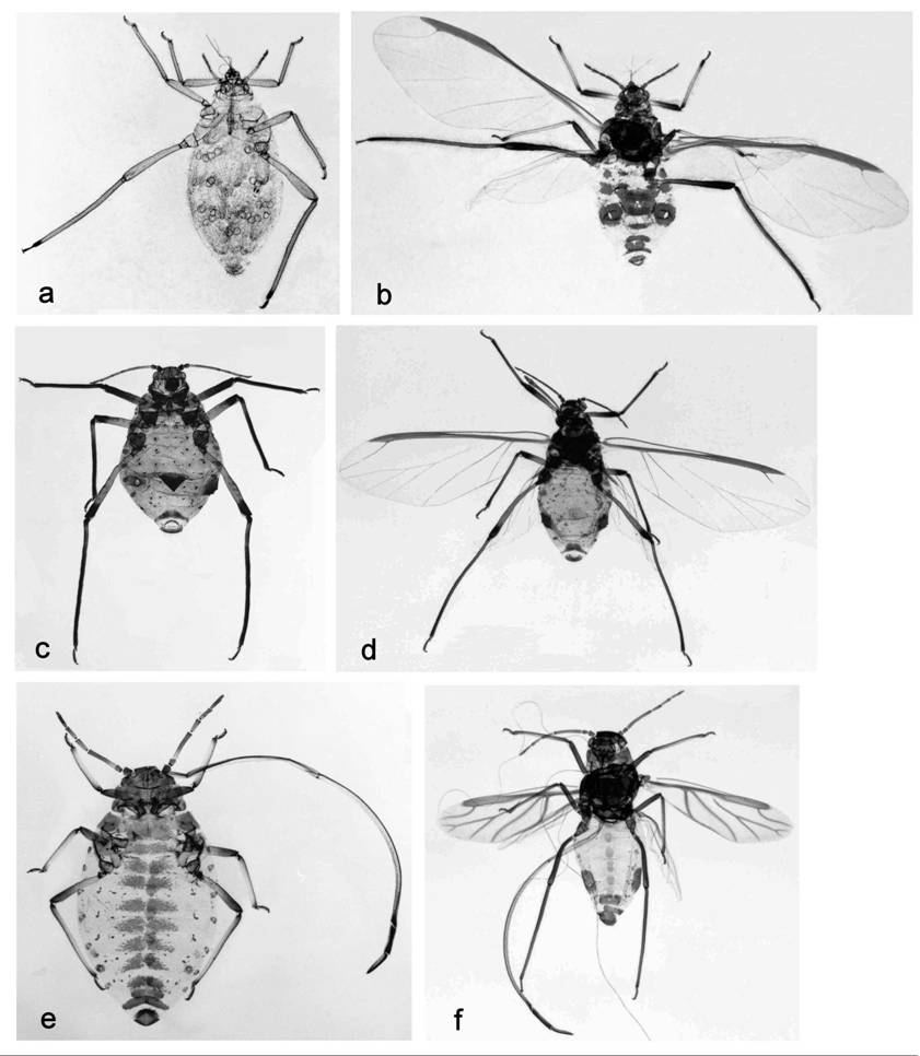 (a) Nippolachnus piri, aptera; (b) N. piri, alata;